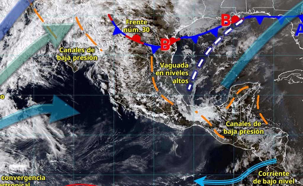 Mañana miércoles ingresará un nuevo frente frío por la frontera norte que reforzará la probabilidad de lluvias puntuales fuertes en regiones de Veracruz, Oaxaca, Chiapas