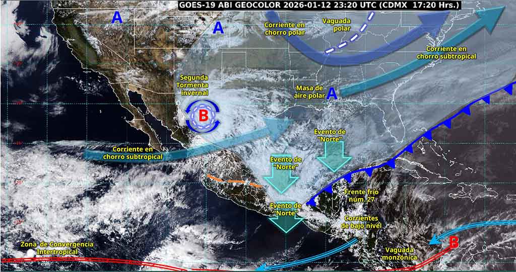 Este viernes, el desarrollo de la tercera tormenta invernal ocasionará caída de nieve y/o aguanieve en sierras de Baja California, Sonora, Chihuahua, Durango y Sinaloa