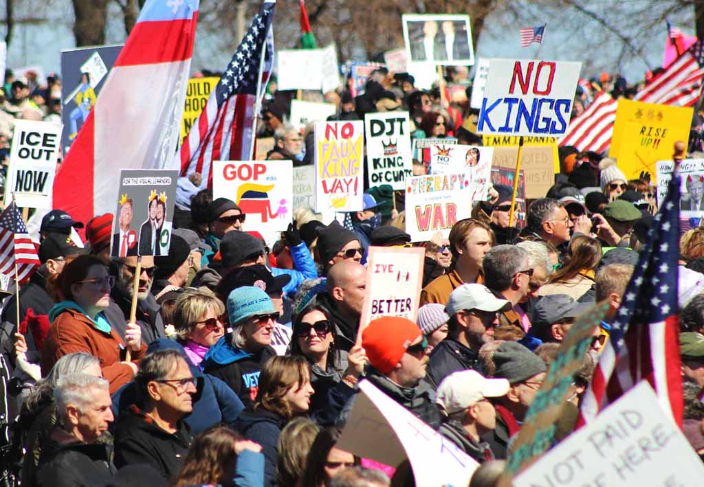 El lema “No Kings” sintetiza una crítica de fondo: la percepción de que el Ejecutivo ha rebasado los límites tradicionales del sistema democrático mediante el uso intensivo de órdenes ejecutivas, decisiones unilaterales en política exterior y una narrativa que confronta a instituciones clave.