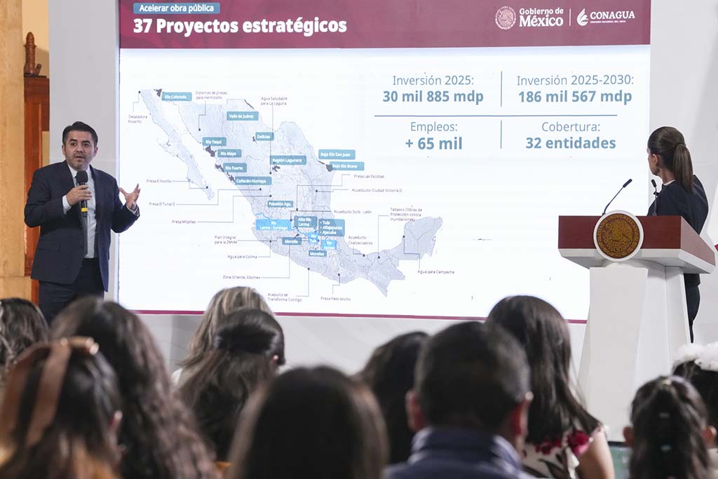 El Gobierno de México, a través de la Comisión Nacional del Agua (Conagua), informó que en 2025 se invertirán 30 mil 885 millones de pesos (mdp) para realizar 37 proyectos hídricos estratégicos en todo el país, los cuales generarán más de 65 mil empleos directos. Mientras que en todo el sexenio se realizará una inversión de 186 mil 567 mdp.