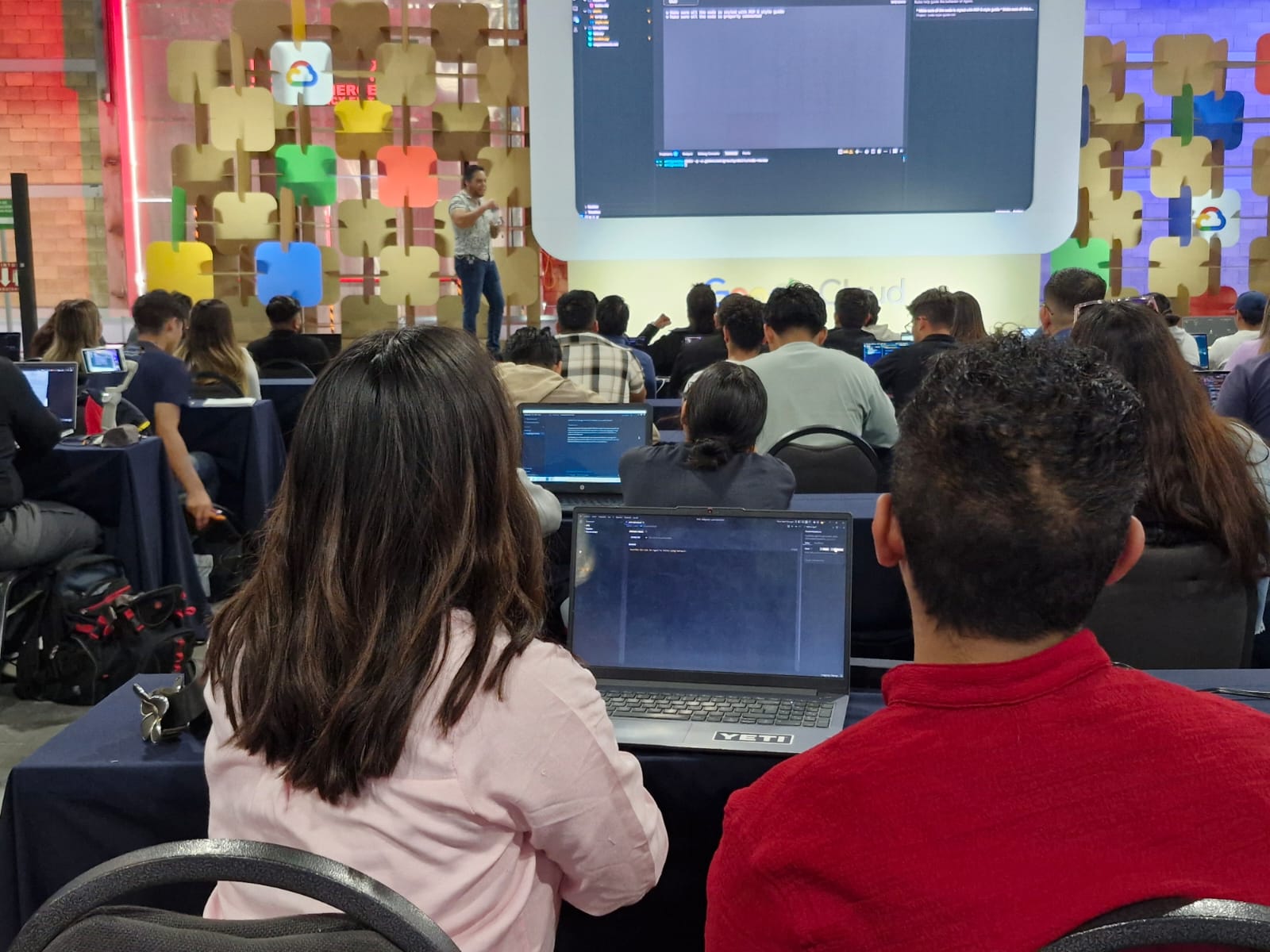 Una zona con mucha demanda fueron las capacitaciones para construir agentes con IA, diseño de juegos, servicios en la nube y más. Jóvenes ávidos de conocer cómo mejorar sus capacidades, en qué necesitan certificarse para tener mejores herramientas para su desarrollo profesional.